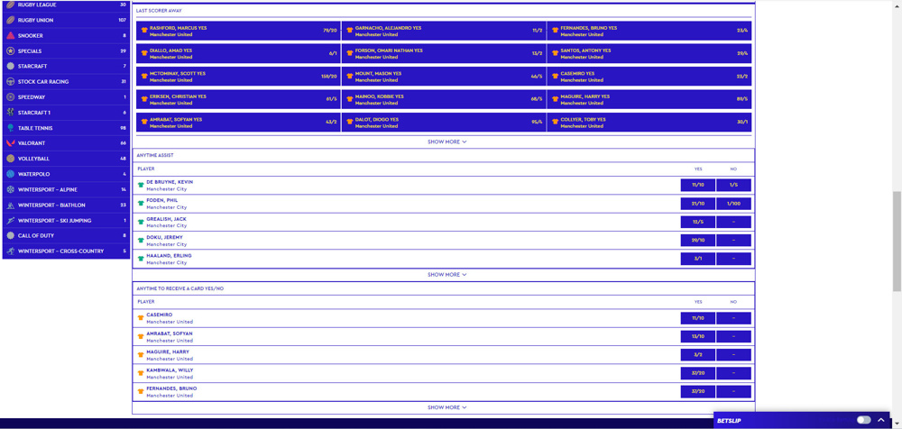 It’s true that the vast majority of money wagered on football are on the main markets, like the match winner, over/under 2.5 goals, correct score and asian handicaps. But there will certainly be other punters who prefer to venture to more under-the-radar markets, like: a certain player to score the last goal of the match, a player to get an assist, which team will score last or which side will get the most corners in the match. With 100s of markets available on every match of note, whichever is your favourite will almost certainly be available here.