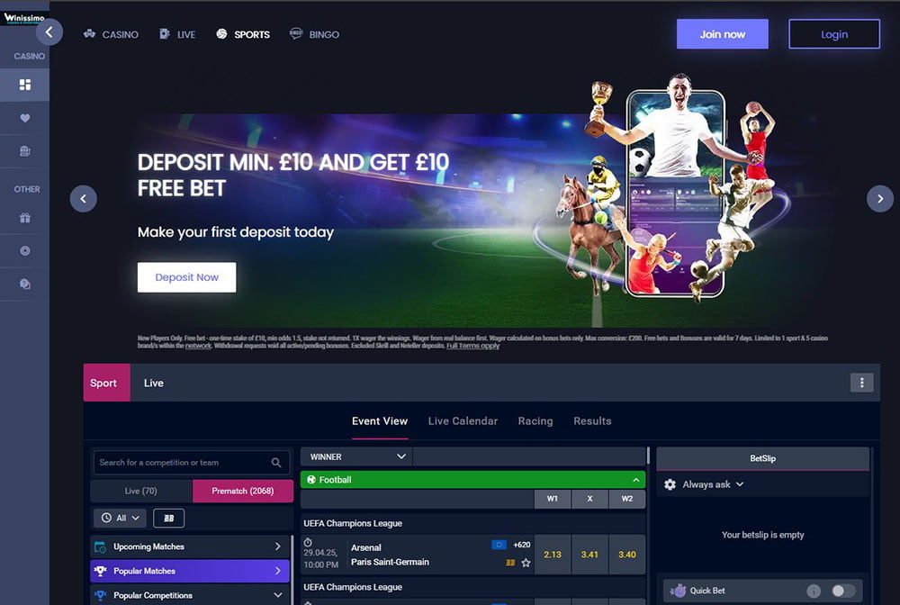 Winissimo Sign Up Offer: Deposit £10 & Get £10 Free Bet